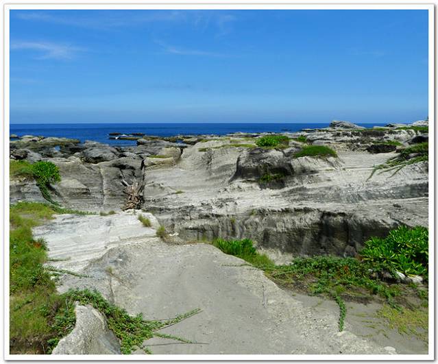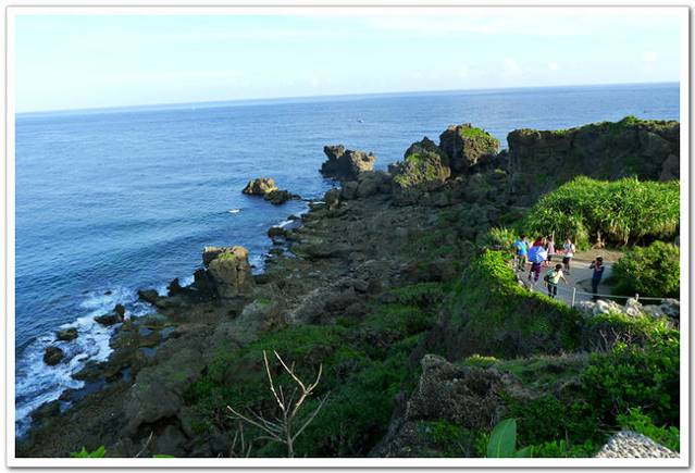 顺着渔港望过去,弧形海岸风景优美。据说,1543年,一艘前往日本的葡萄牙船只经过这里时,船员从海上望见台湾秀丽的景色,不禁赞美说:“Ilha Formosa!”于是称这座岛为“福尔摩沙”,意思是“美丽之岛”。站在石梯坪怪石林立的海岸上,面对碧波万顷、浩瀚湛蓝的太平洋,看海浪汹涌,波涛澎湃,浪花飞溅,真是令人心旷神怡。