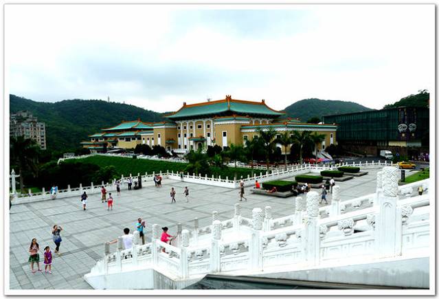台北故宫博物院(Taipei's National Palace Museum)是中国著名的历史与文化艺术史博物馆。坐落在台北市基隆河北岸士林区外双溪,始建于1962年,1965年夏落成。为中国宫殿式建筑,共4层,白墙绿瓦。院前广场耸立由6根石柱组成的牌坊,气势宏伟,整座建筑庄重典雅,富有民族特色。院内设有20余间展览室,文化瑰宝不胜枚举。院内收藏有自北京故宫博物院、南京国立中央博物院、沈阳故宫、热河行宫、中国青铜器之乡-宝鸡运到台湾的二十四万余件文物,所藏的毛公鼎、散氏盘等商周青铜器,历代的玉器、陶瓷、古籍文献、名画碑帖等皆为稀世之珍,展馆每三个月更换一次展品。台北故宫博物院占地总面积约16公顷,依山傍水,气势宏伟,碧瓦黄墙,充满了中国传统的宫殿色彩。博物院的主体建筑分为四层,正院呈梅花形。