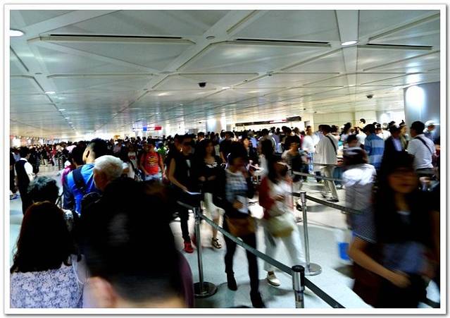 通关的大厅里,来台旅游的大陆客乌央乌央的。