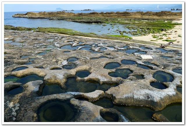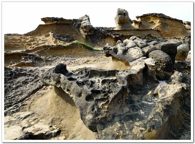 野柳地质公园位于台湾省万里乡,野柳是突出海面的岬角(大屯山系),长约1700公尺,由于海蚀风化及地壳运动等作用,造就了海蚀洞沟、蜂窝石、烛状石、豆腐石、蕈状岩、壶穴、溶蚀盘等绵延罗列的奇特景观。
