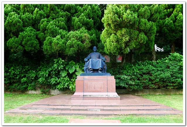 车行至入口处,正面塑有蒋公的坐姿雕像。
