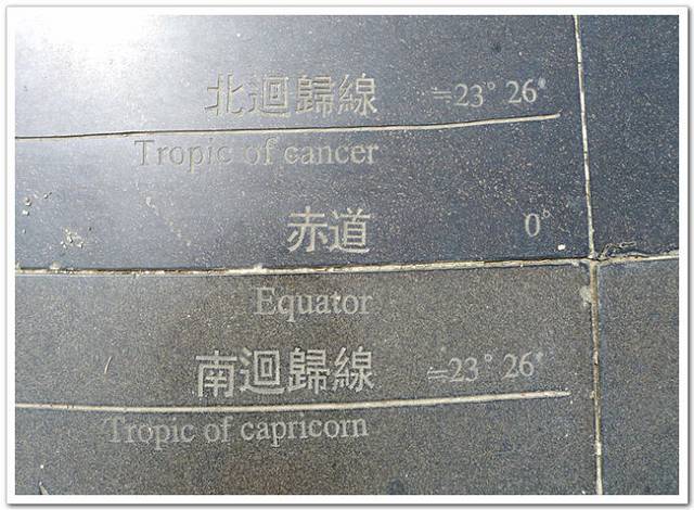每年夏至(6月22日左右)这一天正午11时54分,太阳光从上面垂直照射,在这一刹那,就能看到“立竿不见影”的天文现象。也正是从这一瞬开始,北半球进入夏季。当你两脚跨踏塔底中央的石板时,就是一脚在热带,另一脚则在亚热带(北温带),别有一番地理上的感受。