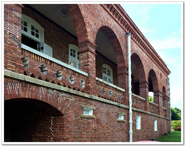 打狗英国领事馆的建筑风格属于后文艺复兴时代的巴洛克式风格,红砖的外观、竹节落水管都是清朝末年当时的建筑特色,为英国人所设计,特殊的花栏、石雕和圆拱都是打狗英国领事馆的不同之处。打狗英国领事馆外墙半圆拱呈现连续性的美感,转角处拱大柱小、双柱并立的结构让建筑更为稳固。