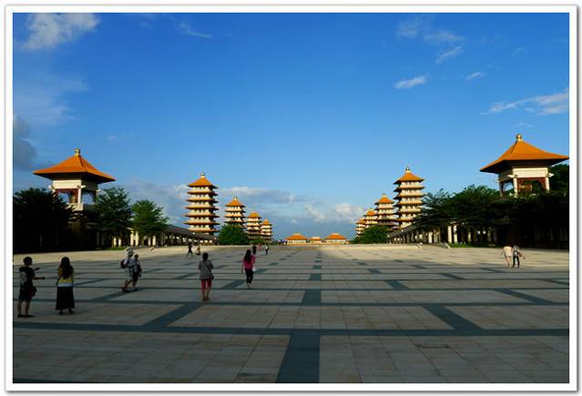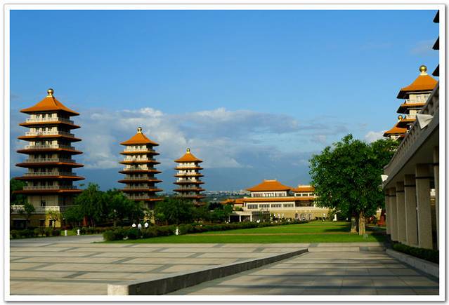 佛光山位于高雄市大树区,是中外闻名的佛教胜地,有“南台佛都”之号。是由星云法师率领弟子创建的。创建于民国56年,其寺庙建筑宏伟,并设立了佛教大学,以推广佛法,佛光山是台湾最大的佛教道场,创办人星云法师为提倡“人间佛教”之道,一砖一瓦建立起佛光山,成为台湾信众最多、最富盛名的佛教圣地。佛光山经过长期修葺,寺院建筑规模宏伟,大雄宝殿、大悲殿、大智殿及大愿殿是四幢主要建筑,疏落有致地坐落在园区内。大雄宝殿占地1800坪,是园中最大的殿宇,内供三尊大佛皆高二丈余,崇伟肃穆;大殿四面墙壁有14,800个小佛龛,在万灯照耀下,使大雄宝殿更显庄严神圣。佛光四句偈:慈悲喜舍遍法界,惜福结缘利人天,禅净戒行平等忍,惭愧感恩大愿心。佛光山旁边建有一座佛陀纪念馆,也成为游客到高雄时必到之处了。