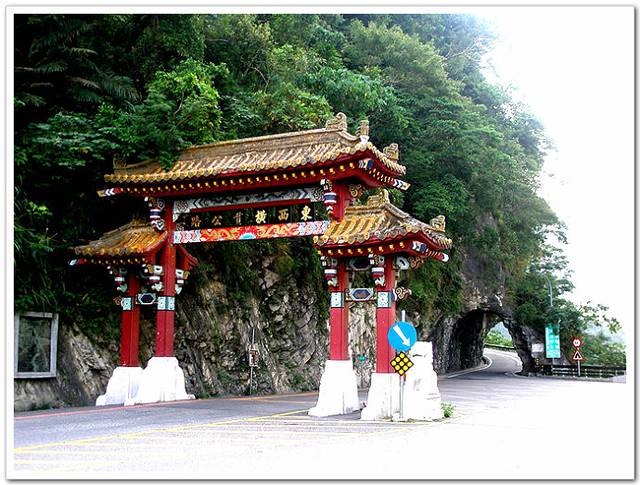 花莲市北行25公里,就到了太鲁阁峡口。迎面可看到一座红柱琉璃瓦高大牌楼,横匾上写着“东西横贯公路”六个大字。这里是中横公路的东端起点。穿过牌楼,踏上公路,人们立即会被沿途壮美的景色所吸引。这里有断崖深谷,临空飞瀑,清澈溪流,处处蔚为奇观。景色之雄奇,可以说是鬼斧神工,参天地造化之最,被列为“台湾八景”之一,名“鲁阁幽峡”。