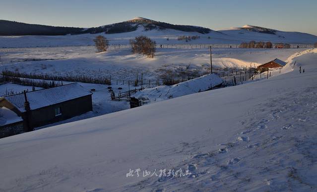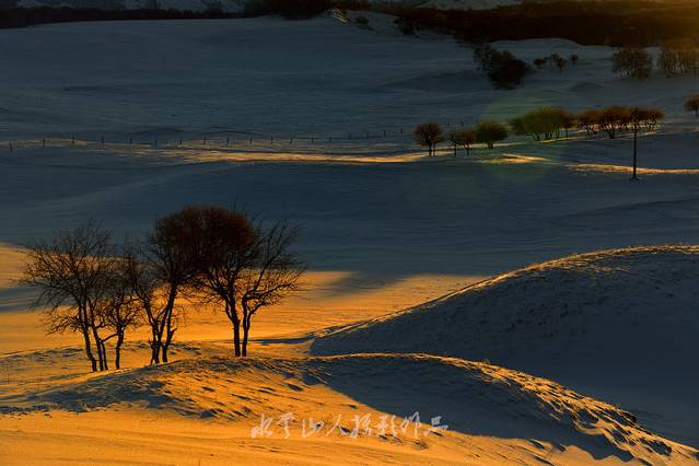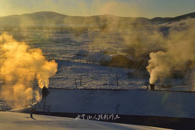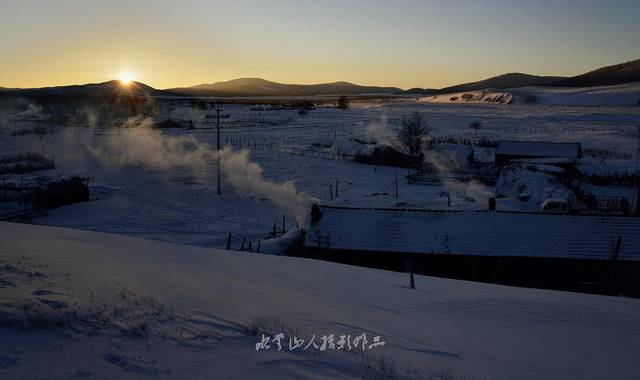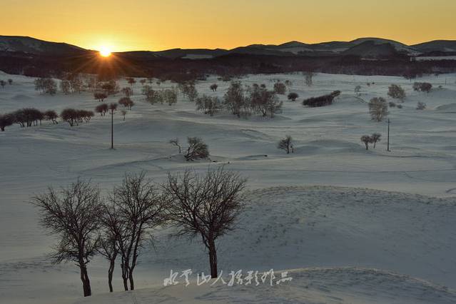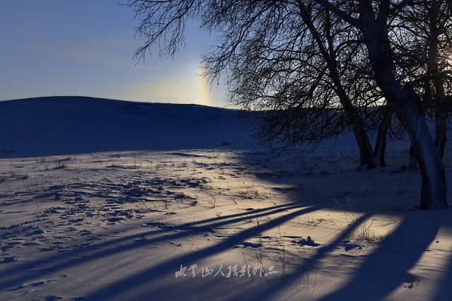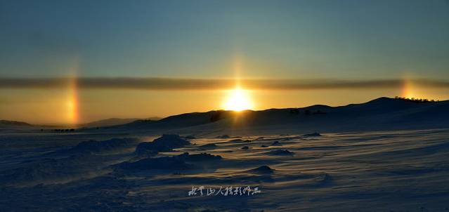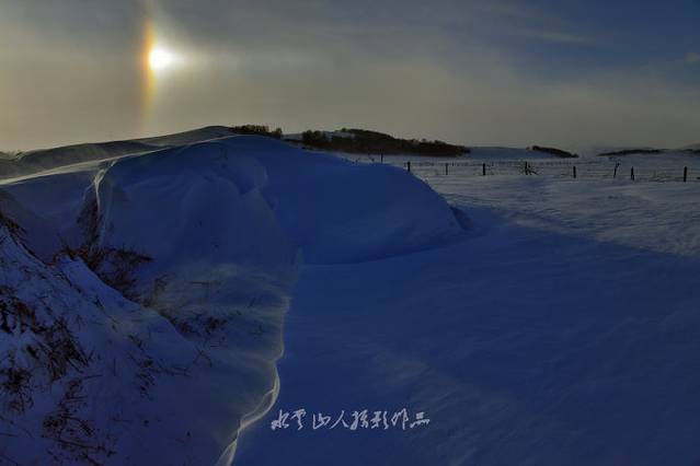早晨6:30出发,到白家窝铺拍摄日出冰雪草原的神奇景观。
