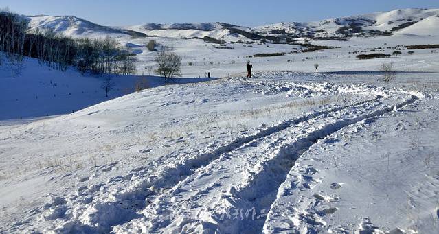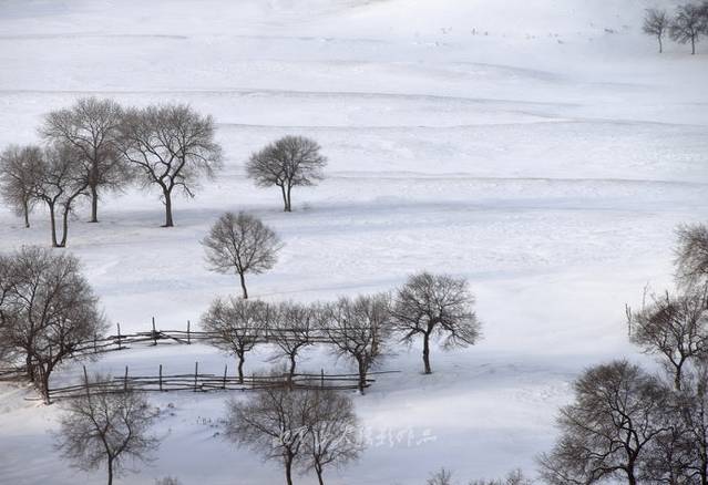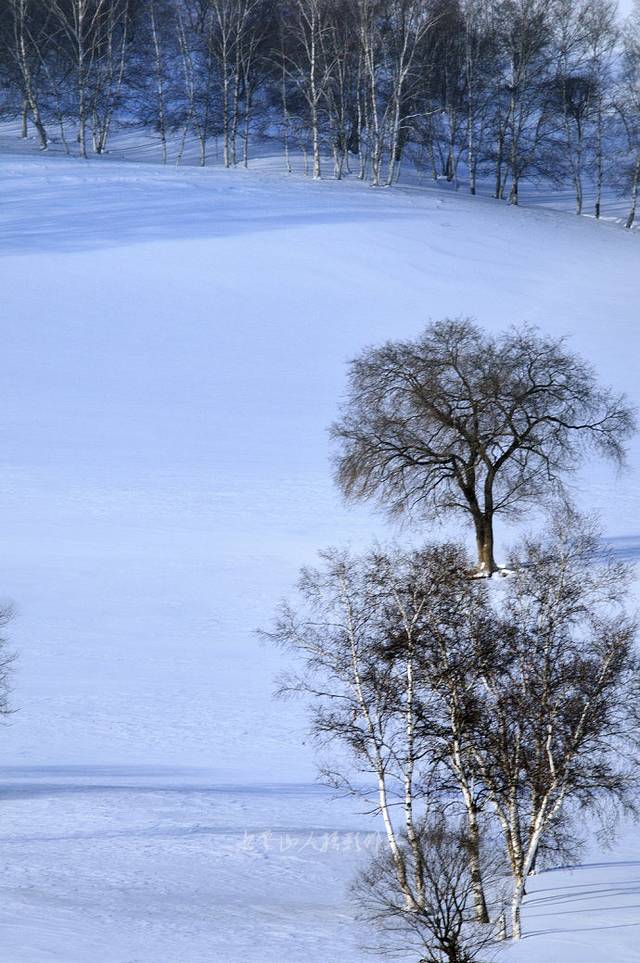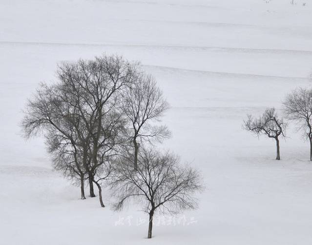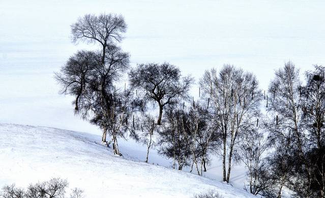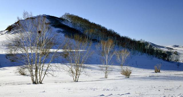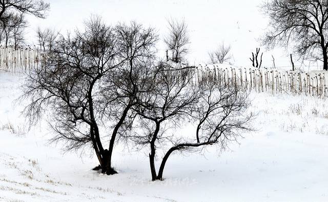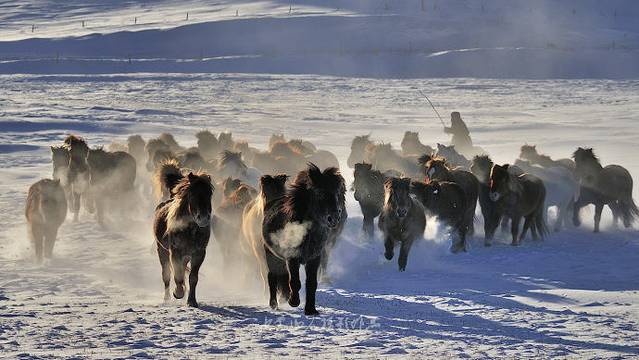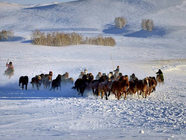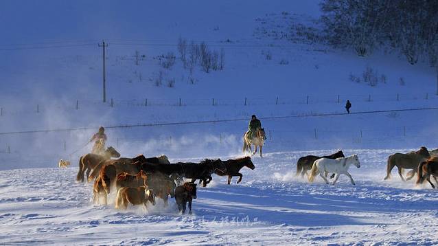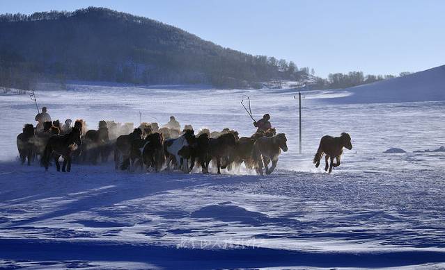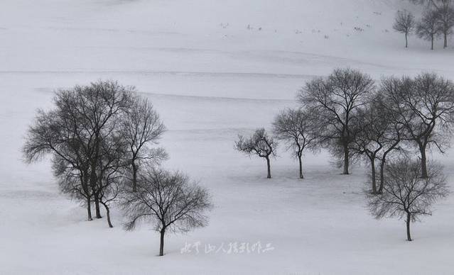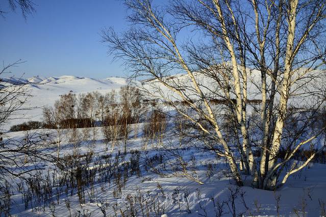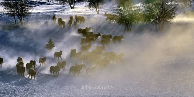 北国风光,晴空雪原,水墨桦林,塞马点点。
