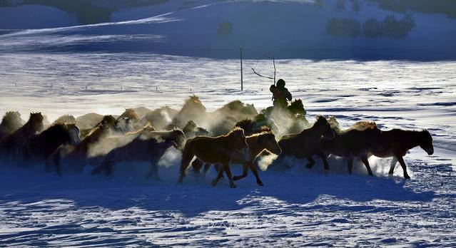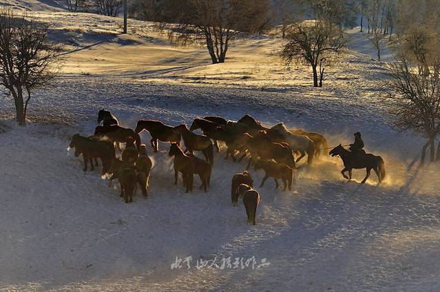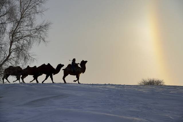 日珥,驼队,桦林,雾凇,夕阳,羊群,拍的比较理想。