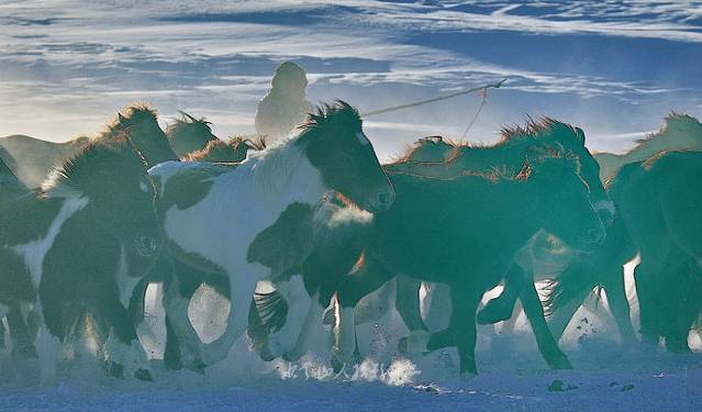 3、发现拍摄奔马时将D300相机设为连续自动对焦,反而不易聚焦!笔者认为不应该如此,或者所选对焦点恰好不易对焦,或者马运动太快,或者天气太冷,由于已不能在相同环境中重复验证,也就说不清楚了。
