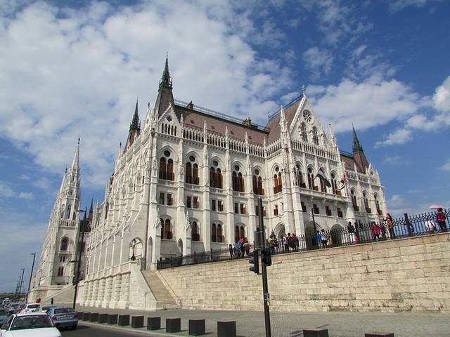 河对岸绿顶的那幢房子是总统府