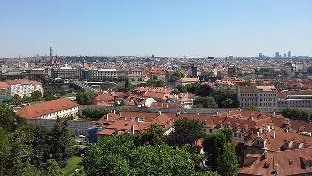 这座山到底叫什么,我真不清楚,房东告诉我说,就叫公平山。原因是捷克作为社会主义国家解体时,国民关于今后何去何从的争论。为了纪念,特别在这座山顶搭建了一座天平,天平指针倾向西方。而天平正对的这座桥就叫人民桥,地图上是Cechuv most桥。在公平山上据说可以看见N座桥,我只看到7座桥,但是眺望伏尔塔瓦河上的桥,确实是个相当出色是地方。山上有二处观景台,一处是搭建公平的地方;另外一处相距不远,沿着山上公园的路朝西走就看见这座房子,房子前面是观景台,这里观景角度更好。