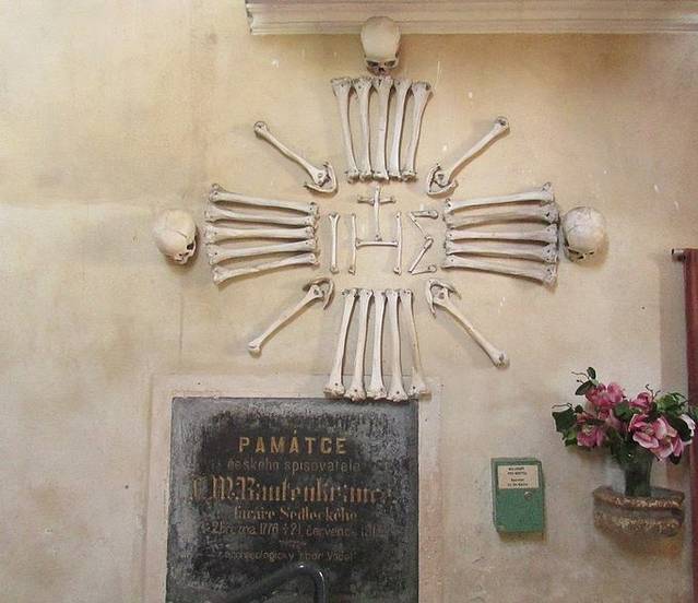 13世纪时,当时的修道院院长将一把从耶路撒冷带回来的泥土洒在了修道院的墓园里,使这里成为了中欧教徒们的最渴望长眠的地方。16世纪时修道士将黑死病人和因战乱而死的40000人骨堆砌在这里。施瓦岑贝格(Schwarzenberg)家族在1870年买下了Sedlec修道院,他们让当地的一位木匠用40000人的骨骼进行创作,这些骨骼在这儿的地下室里存在了几个世纪之久。人骨被做成了吊灯、圣杯、徽章。有中文介绍材料,是免费借阅的,看完了一定记得还回去。