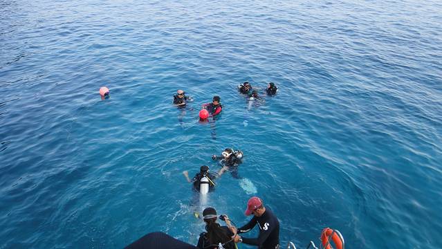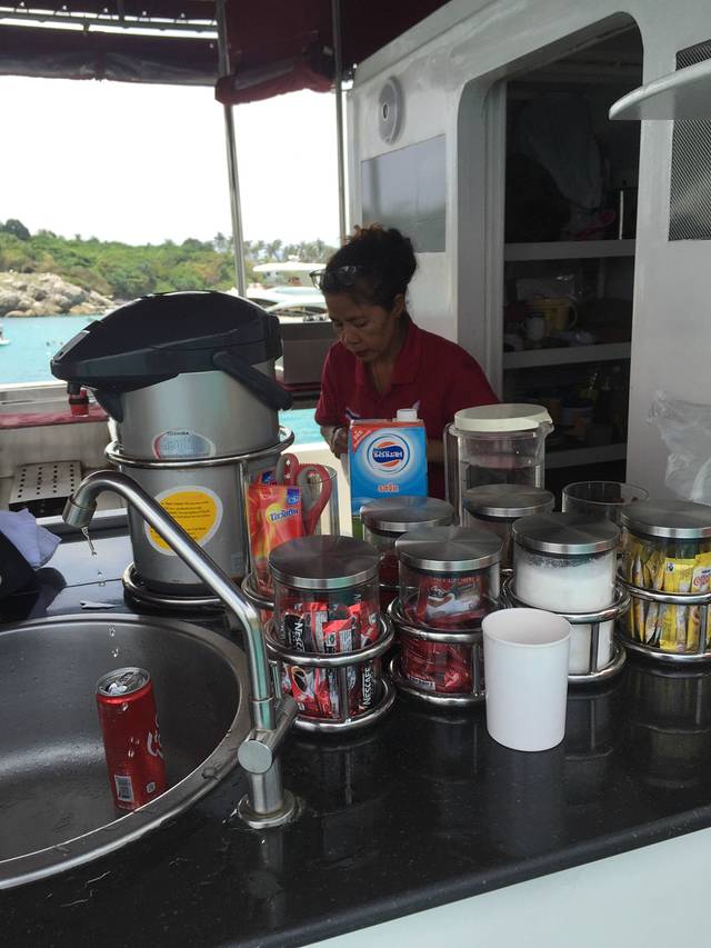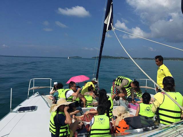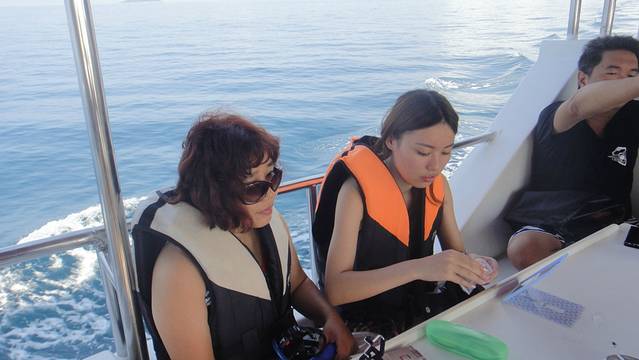 登岛的时候发生了点小插曲,导致我们差点拿不到泳衣,所以大家记住在下船的时候就要看看自己有没有落下什么东西,因为一旦船开走了,基本上就会去接下一批客人,还好我们比较幸运,船上的小黑给我们把泳衣送了过来。