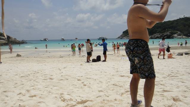 皇帝岛人很多。而且你坐在那边的躺椅是要收200泰铢的,Rachel 酒店也不允许不是本酒店的人随便进去。