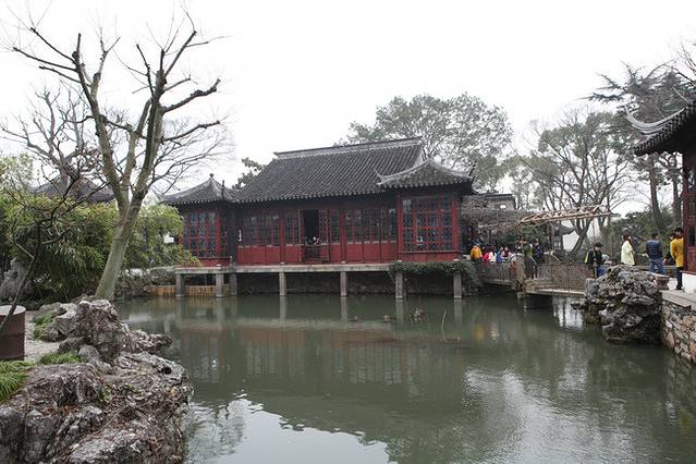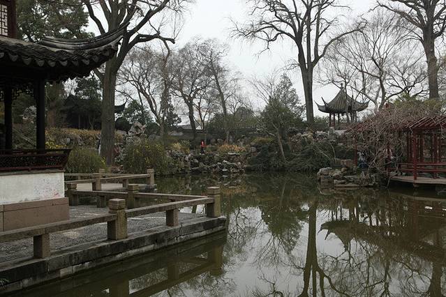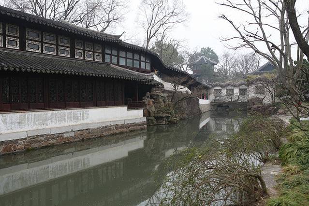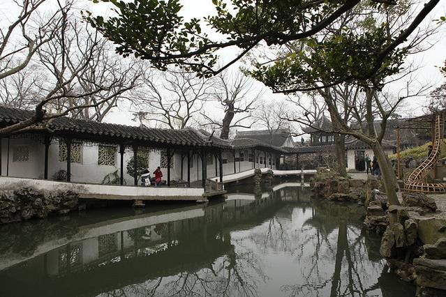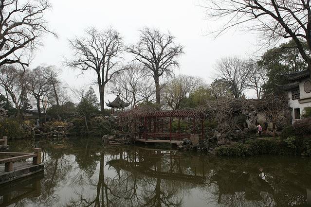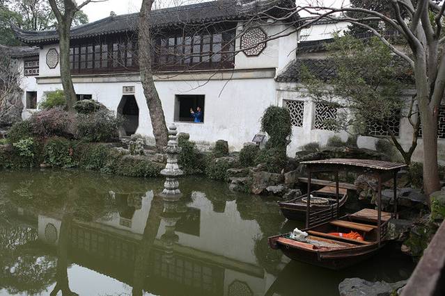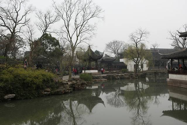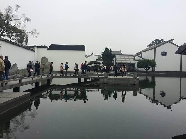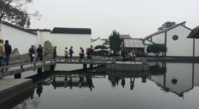 原来计划今天的行程是拙政园-苏州博物馆-狮子林-枫桥景区,然后拙政园门口碰到好多一日游团。当导游来劝说参团的时候,其实一开始我是拒绝的,因为我有自己的行程,不能你说参团就参团啊,导游的一日游路线拙政园-唐寅园-游船-丝绸馆 或者留园-游船-唐寅园-游船 90/人,拙政园和留园只能二选一,拙政园门票淡季70/人,感觉参团也还可以。加上本身对枫桥景区不感冒,据说它是因张继的那首《枫桥夜泊》名声大震,后来开发的,寒山寺也是很小很小。于是我们参加了一日游的团。不得不说,苏州的一日游相当成熟,仅通过一个小小的商标就能带你走完整条路线,而且游览拙政园的时间不受限制,可以随时上大巴,随时走,总体还不错。
