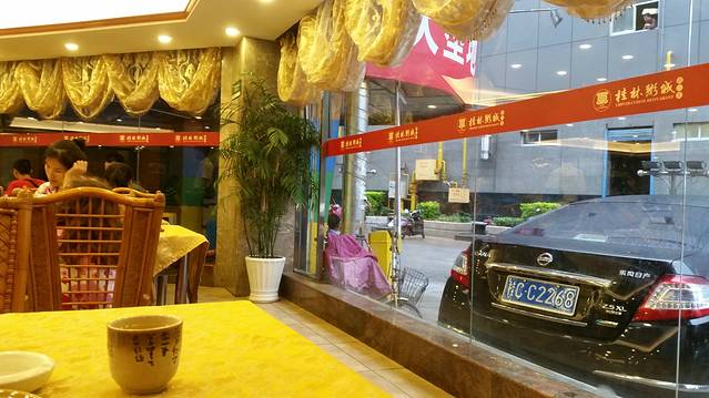 因为吃完饭,下雨了,所以我们打车回酒店,桂林可以用滴滴打车。