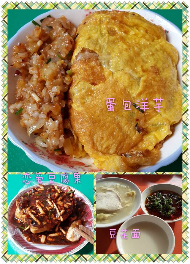 在遵义还迟到了蛋包洋芋,作为一个爱吃土豆的人,觉得土豆怎么做都好吃。恋爱豆腐果就是整块豆腐烤熟,从中间剥开,加入海带、折耳根等调料。豆花面是遵义人的早餐之一,蘸水非常重要,里面要加一种香料。