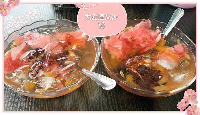 最后放一张我的大爱,遵义冰粉,我基本上每天都要吃一碗,荤的是加了西瓜,素的是只加黑糯米、芝麻和花生的、市医院门口的冰粉摊摊非常出名,据说冬天都在卖。
