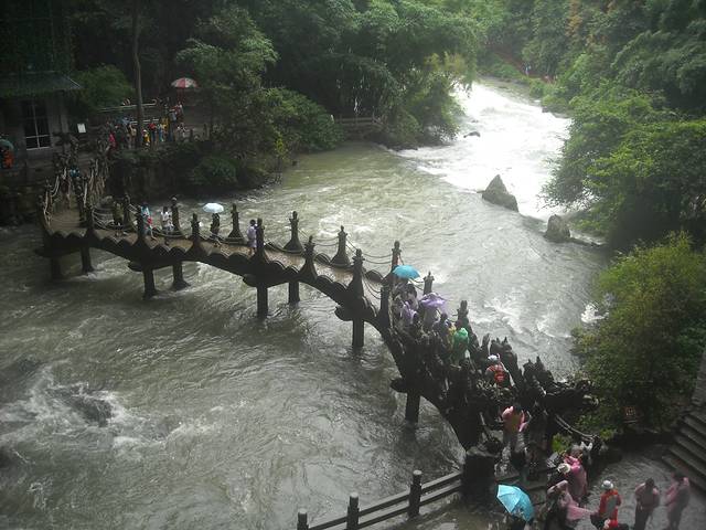 美丽的银坠滩瀑布,像一个弧形路都,四周的水聚集在中间。它既不是以高取胜,也不是以阔或大惊人,而是以它千丝万缕的情态和如泣如诉的瀑声,让人看见就不想离开。
