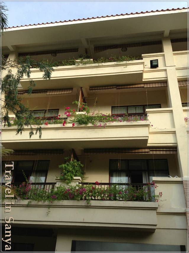 我们住在5楼,每个阳台上都种了三角梅,没错,就是厦门的市花,我刚知道原来除了厦门之外海南岛也有这么多的三角梅!一楼的阳台外面有个人造的小溪。