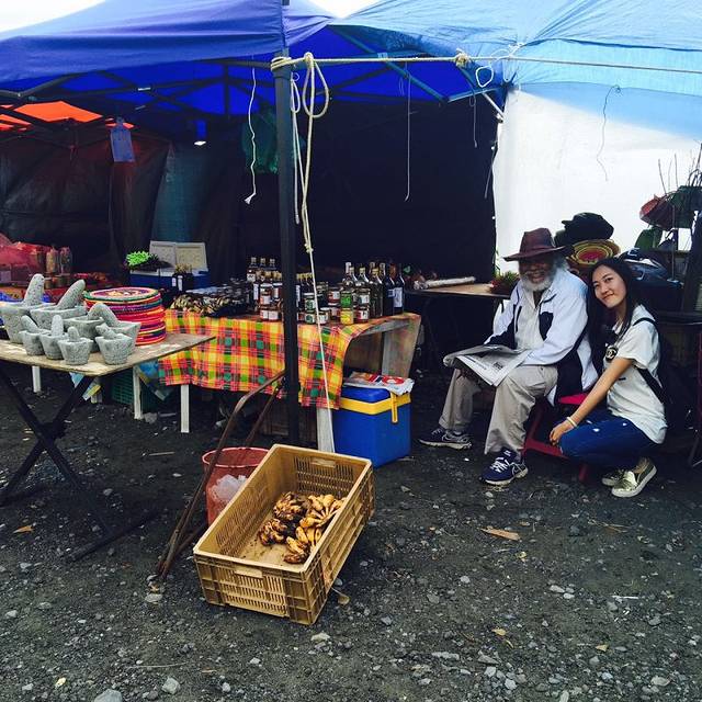 和路边卖水果的老爷爷合照,他非常友好