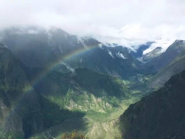 因为留尼汪的天气多变,我们徒步火山的时候下了很大的雨,但是也让我们见到了很多个彩虹(徒步火山必须穿长袖外套,山上气温低)
