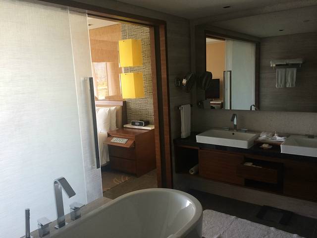 从美高梅退房前往海棠湾的喜来登。说实话喜来登的服务跟美高梅还是有些差距的,光是办理入住就用了1个小时,房间离大堂很远但是下楼就是泳池和海边这个还是不错的。