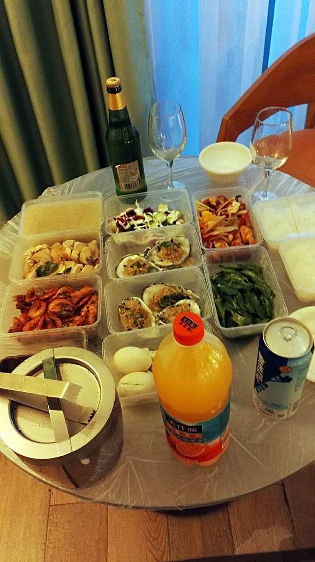 当天晚上我们从大众点评叫了一个外卖,《红帽子》外卖,这个更要夸奖一下,服务很好,菜品很好,蝦处理的很干净也很好吃,送餐是免费的,不过因为酒店的关系,只能送到大门口,需要自己去拿。光是饭盒就装了两大包,老板还送了一个沙拉、两个咸鸭蛋。蘸料也是打包送来的,这顿吃的相当满意!!