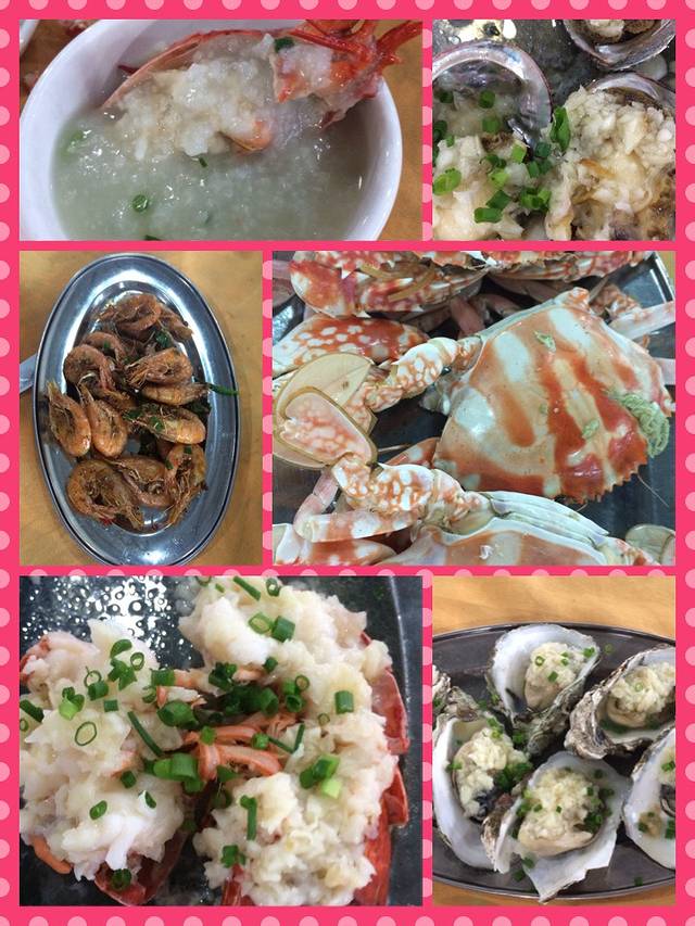 饭后为了帮助消化,去了海口海边公园,拍了几张照片。 到了饭点,重头戏来了,我们来到板桥海鲜广场。一进广场就会有一群大姨或小妹拉着你去她家吃饭,当然他们只是加工店的,你可以自己去市场买,全部都是新鲜的海鲜,很便宜,随便挑。龙虾我们选得两吃(头煲粥,尾清蒸)基围虾椒盐,这个也是看自己喜好,总之我们吃的非常开心。
