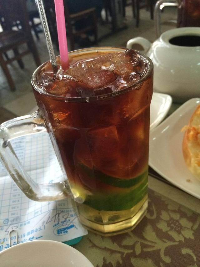 柠檬茶,上面有一层蜂蜜很甜,所以要用吸管从下面喝,然后再浇入红茶