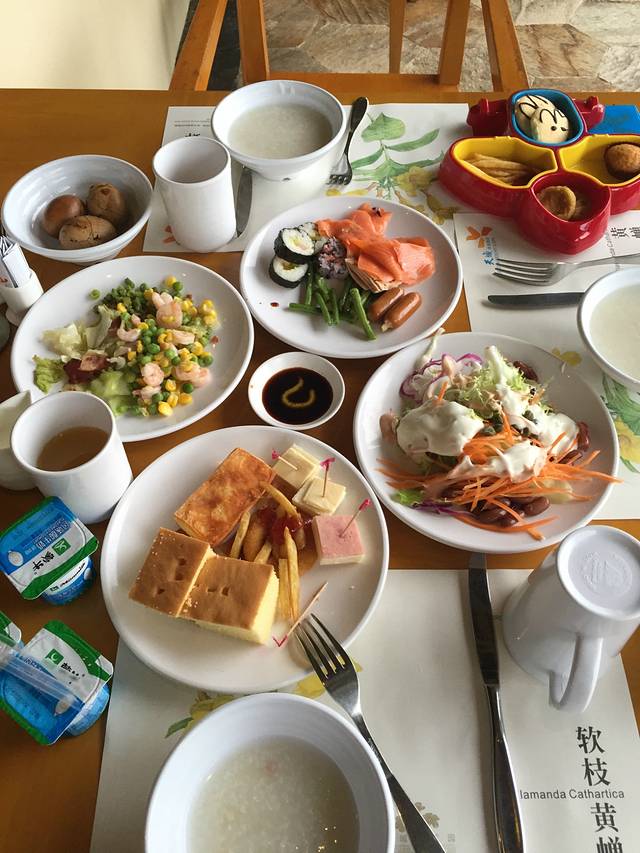 早餐,还是吐槽下吧,相比京海和海棠湾九号性价比是最低的了,海鲜粥不过就是白粥加了点盐和味精,蛋糕不知道是不是怎么,吃起来干干的,没有香糯的口感。