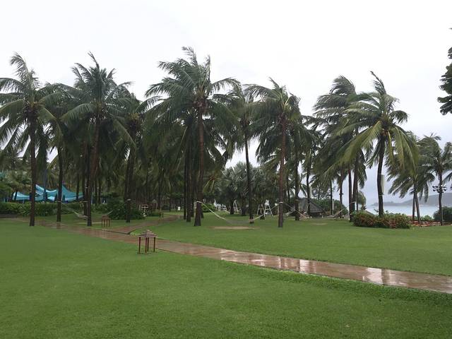 尽管大雨不停,但是没有赶走我们的好运气额,我们定的是园景房,不但提前入住,分到的房间还能清除的看见大海额,如果不是茂密的椰子树当着,也算是海景房啦,而且这个房间离海边远,还是很安静的,衬着园景看海,也别有一番风味哦