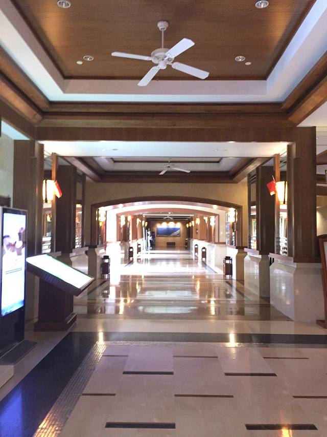 晚饭后回到酒店,随手拍的酒店大堂,不得不说还是很大气的,海南的酒店大堂一般都在二楼或三楼,大堂不装空调,最多就是安装超大的吊扇,海风从大堂穿过,充满了浓郁的热带气息