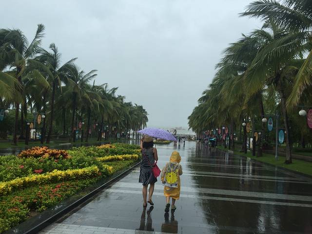 来到天涯海角,妈妈这颗操碎的心,雨衣也终于有了用武之地!!!裙子也从上到下从里到外湿透了,雨伞也就是个心理安慰吧