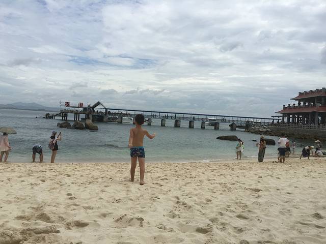 看见了么,蓝天、白云、沙滩、右边是蜈支洲岛码头哦