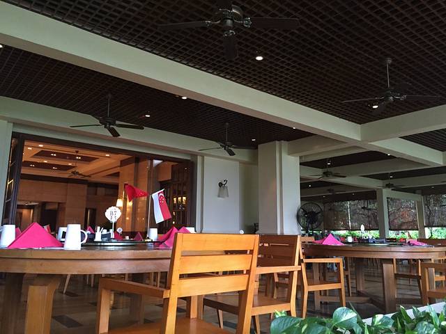 花峪海餐厅,在这里没有空调就是微微的海风,吃着早餐,看着在空中舞蹈的蝴蝶,微微的阳光也正努力冲破云层准备带给我们热带的热情和火热