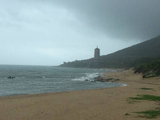 其实大家看看,三亚湾的海水还可以啦,啥子也没有那么的粗,尽管下雨,海水还是湛蓝的,我想晴天应该还不错呢,本来是打算晴天来三亚湾看落日的,天公不作美啊,这算是再来一次的合理理由吧哈哈