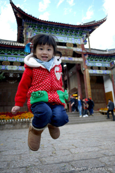 DAY1 这一天基本在路上,早上10:40的飞机飞丽江,8:00从家里出发,在临行的前一天,小妞突然就有些感冒了,鼻塞、流鼻涕。。。但我们还是照常上路了。小妞一路上倒是兴致很高,丝毫没有因为身体不舒服而影响心情。由于来之前就在网上订了头哥他们的的纯玩品质游行程,到丽江的第一天就是逛逛古城,找找住宿什么的,第一天刚到不适合出去玩,头哥他们的游乐多旅游贴心的安排,赞一个
