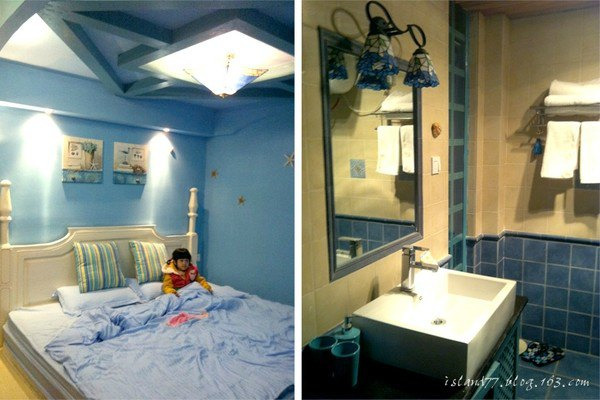 这就是我在网上提前预订的客栈,床超大,是2张1.1米的床垫拼在一起的,做成榻榻米的样子,适合我们一家三口一起睡,床垫很舒服,卫浴设施也挺高档的。