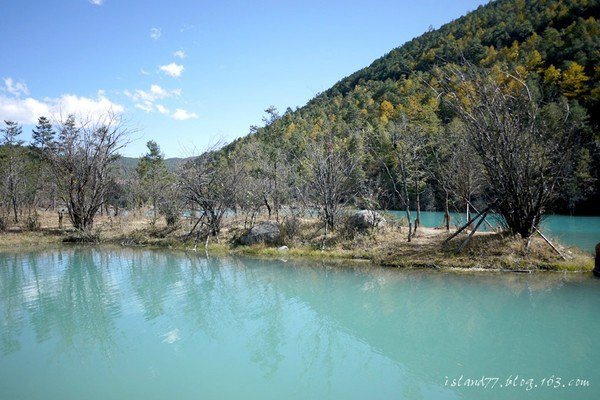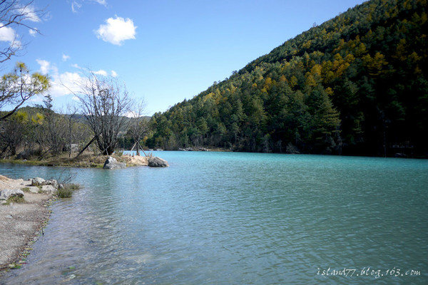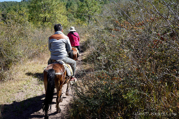 这里的马比较调皮,见到路边的草和树叶或者水,就要去吃,你要不断地拉它的缰绳。