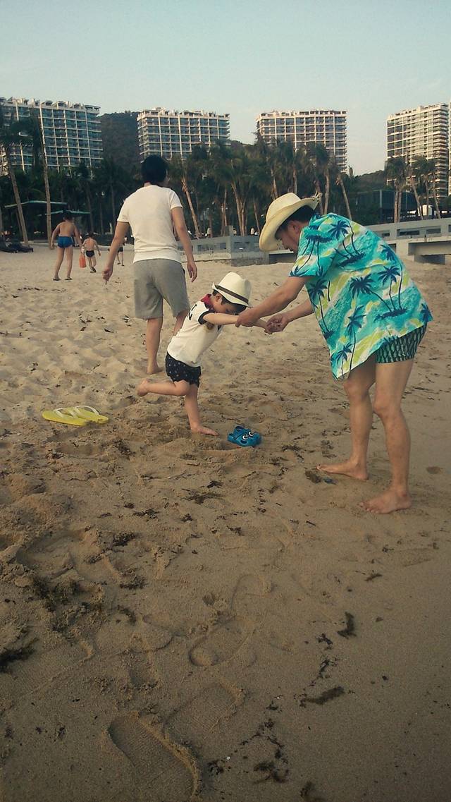 宥宝和岛服爷爷,一开始还是排斥粘着脚的细沙的。
