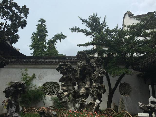 虽是冒着蒙蒙细雨来的,可我觉得这意境这氛围,跟这狮子林挺配的,到处都是小景儿,一棵树,一朵菊,一块石,一面窗,都能让你好好看上一眼。惊艳,谈不上,可就是能抓人心,喜欢,看的舒服,不刺激,忘不了。
