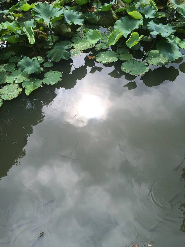 园里有一湖,湖里都是各种大小的鲤鱼,各种颜色,真叫好看。
