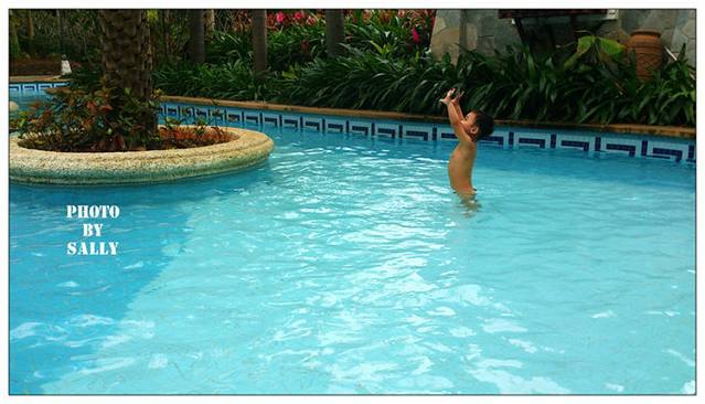 住的酒店每天都可以泡温泉,跟小鱼玩