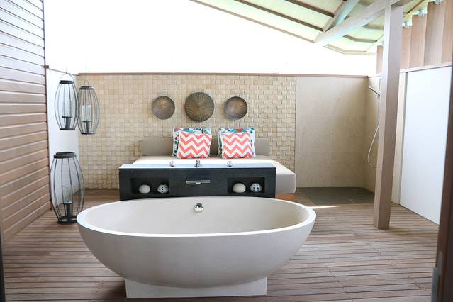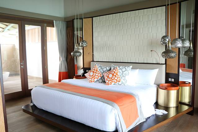 翡诺岛的住房都是别墅,有水上别墅和沙滩别墅。配备一个私人管家。里面很宽敞,卧室、客厅、浴室、厕所,以及外面的大阳台,分成五部分。