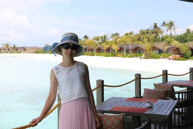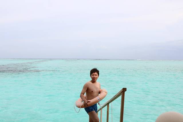 今天..有一件难忘的事,就是尝试体验深潜。。教练他们说不会游泳也可以参加,觉得潜水会很好玩,很想看看海底新奇的世界,既然来了就想体验潜水,(浮潜需要游泳测试,我不会游泳)所以报名参加了深潜,深潜分别有5米,12米的深度。早上集合后,教练给我们讲课,教我们潜水的知识和技巧。一听,那么多要点,就开始紧张了。当我们穿上潜水服和救生衣,背着重重的氧气瓶,穿上脚蹼,戴上面镜,戴好呼吸管,一切准备就绪后,到我要跳下水的时候,我却很害怕,看着那水就害怕,在想在水底会怎样怎样。大家都跳下水了,我站起来却始终迈不出那艰难的一步。我站在岸边,背着重重重重的氧气瓶,重s了~~!站了有些久,教练和老公一直鼓励我。后来鼓起勇气跳下水,是的,真的没什么,可是还是很不知所措!听课的时候是听进去了,一紧张就忘记很多。跳下水之后浮在海面上,教练开始让我们潜入水练习技巧。我再次鼓起勇气尝试下去了,却不自觉紧紧抓着教练的手,由于紧张呛到水了,一想到5米和12米的深潜。。真的很怕水。。。实在没法最后还是放弃了。没有这样的经历,我都不知道自己原来那么怕水。虽然没有尝试成功,可是毕竟我尝试了,对我而言这也是一次很好的经历。照片没有拍到,手机相机当时都放在前台了。在卡尼岛的短暂的一天半,这里的小黑,G.O以及村长,总是笑脸迎人,主动和你问好,他们都很热情友好!!小黑们总是勤快地做着事情,快乐,服务周到细心;来自世界各地的G.O充满活力,这里有很多的会讲中文的G.O,让你倍感亲切。一张张微笑的脸,你也会总是带着微笑~而这个地方,充满着热情,活力与热带风情。这里的娱乐活动丰富~要离开小岛了,真有点舍不得。在这个岛,有很多家庭来这边玩,这个岛适合情侣、家庭度假。在这边,也看到很多欧洲人,看着他们,觉得他们才是真正的度假,很多人拿着书在太阳下一边晒太阳一边看书,别提有多悠闲。。旅行,不在于你做了什么,而在于心情。。