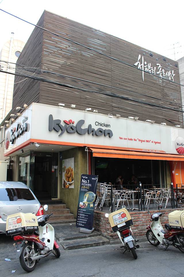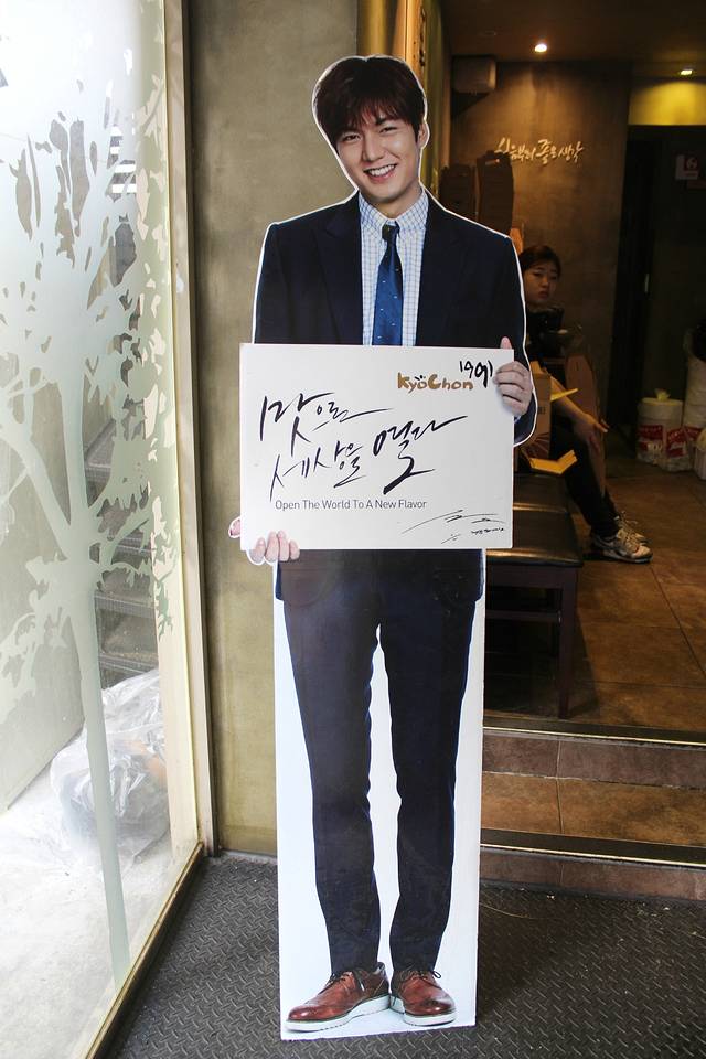 万幸的是,吃饭的时间还是有的,去机场的路上,还是去了弘大。因为是必经之路嘛……那弘大是没法逛了……炸鸡还是可以吃一下的嘛~门口的李民浩欧巴朝我们笑呢~看来欧巴在韩国也是人气十足呢!