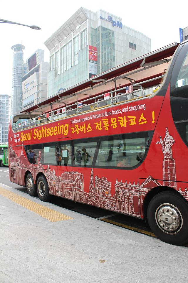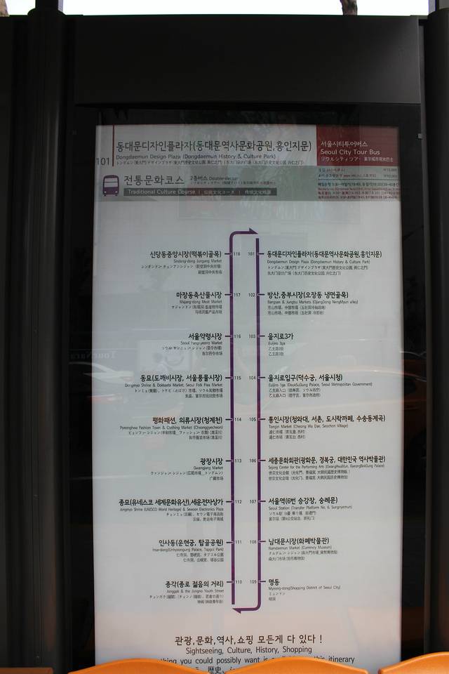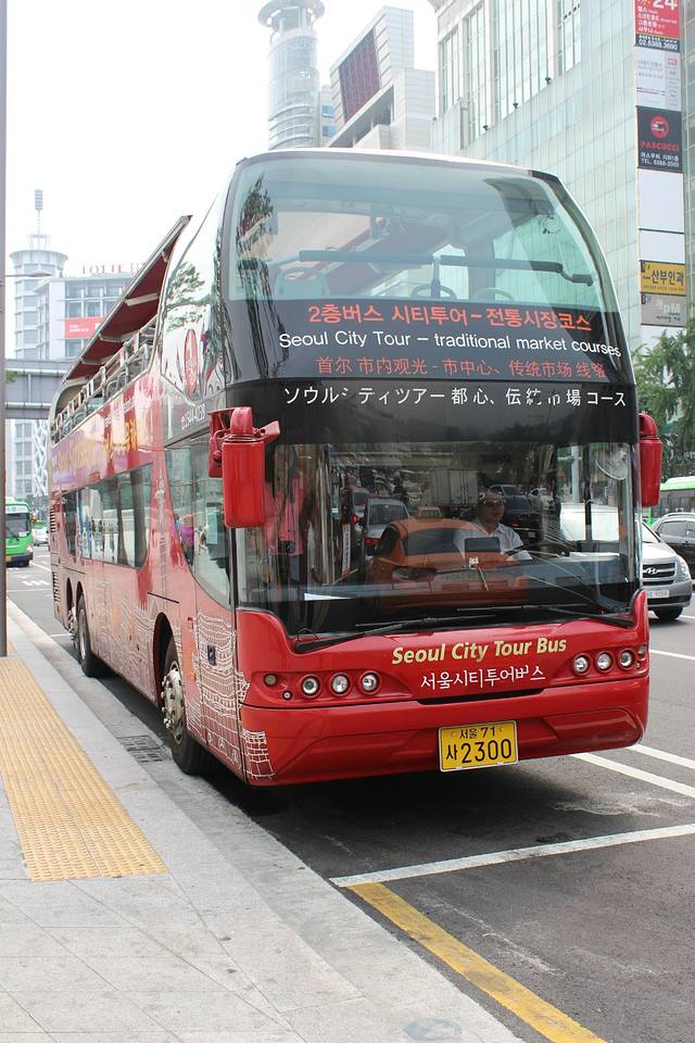 坐地铁到了东大门!看地图这里是……东大门观光大巴的车站呢!我坐在第二层,巴士带着我把东大门,仁寺洞,明洞等等有名的景点转了个遍!坐上红色的大巴!出发咯~