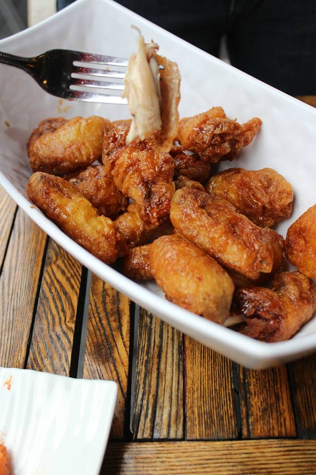 我俩像疯子一样买了许多东西,手里大包小包的,逛的腿儿都快断了……但是因为都是心仪的嘛,超充实的感觉!买的时候跟打了鸡血一样也不知道累,结果又感觉前胸贴后背了……闺蜜说她上次来吃了一家超好吃的店,信心十足的带我去,店名叫做“一只鸡”!真的是不忍直视的店名……一看就知道特色菜是啥……