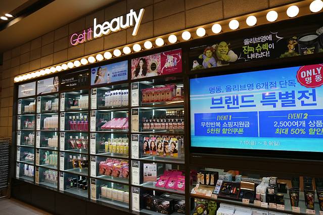 当当当当!来到了化妆品的王国!Olive Young!这个化妆品店不只是在明洞有,首尔各地都有呢!那来这里的原因,因为这儿是总店!总店的东西最全是众所周知的常识啊! 在这里所有人气明洞化妆品都能找到呢!来看看韩国的同仁们都用些什么化妆品,揭开她们美白的秘密!